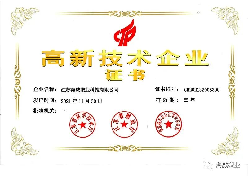 公司专业从事塑料管道研发生产,为客户提供市政管道、设计、工程施工一站式服务。公司陆续投资建立了江苏海威环境科技有限公司,湖北海威管业有限公司,江苏海威环境科技有限公司。同时,公司拥有江苏江阴,湖北赤壁两大生产基地,营销网点遍布全国。