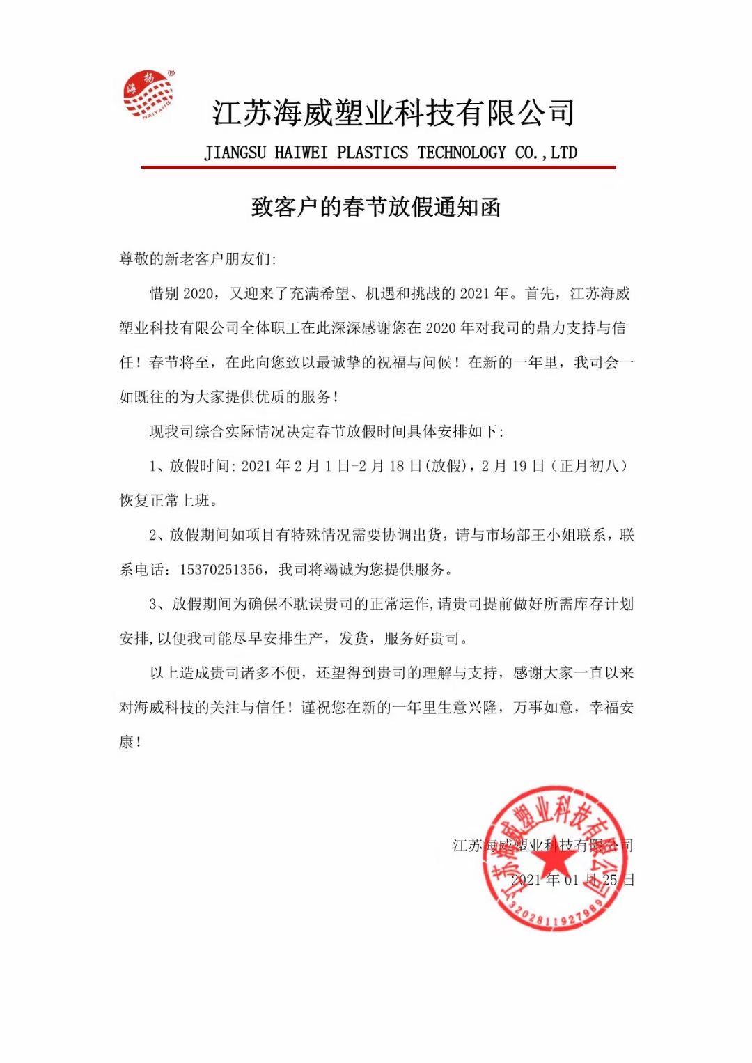 公司专业从事塑料管道研发生产,为客户提供市政管道、设计、工程施工一站式服务。公司陆续投资建立了江苏海威环境科技有限公司,湖北海威管业有限公司,江苏海威环境科技有限公司。同时,公司拥有江苏江阴,湖北赤壁两大生产基地,营销网点遍布全国。