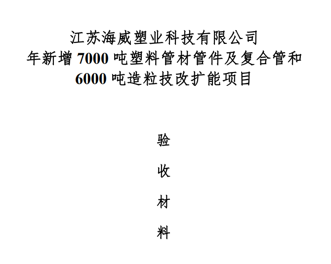 根据《建设项目竣工环境保护暂行办法》,建设项目公示如下:项目名称:年新增7000吨塑料管材管件及复合管和6000吨造粒技改扩能项目;建设地点:江阴市徐霞客镇马镇环镇北路1号;建设单位: 征途国际官网-追求健康,你我一起成长 ;公示内容:验收报告( 环境保护竣工验收监测报告、验收意见、其他事项说明、其他附件),详见···